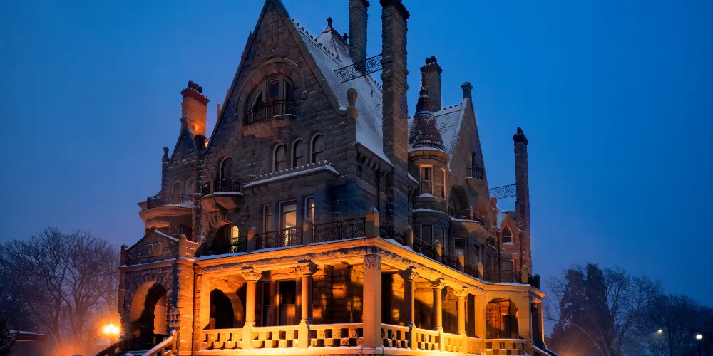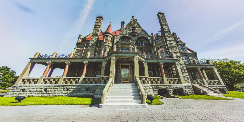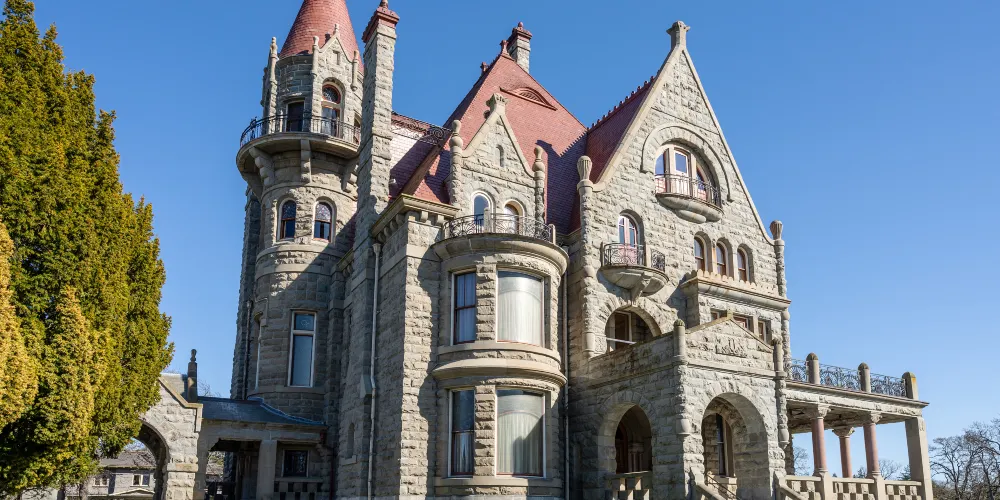 靠著煤礦致富的蘇格蘭企業家Robert Dunsmuir是魁達洛古堡的主人,他斥巨資打造的這座完美宅邸花了3年的時間建造,在1890年完工,內部結構採用了從美國用火車運至的橡木材料2000餘塊配以奢華的彩繪玻璃精雕細琢,打造成了富麗堂皇的房間。