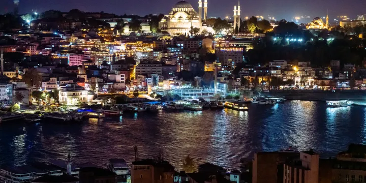 郵輪晚餐:在星空下享受移動盛宴。一邊品嚐正宗土耳其美食及特調飲品,一邊欣賞歐洲與亞洲兩岸的璀璨夜景。歷史悠久的蘇丹艾哈邁德區與現代化天際線隔水相望,這趟郵輪之旅將為您帶來味覺與視覺的難忘融合體驗。
