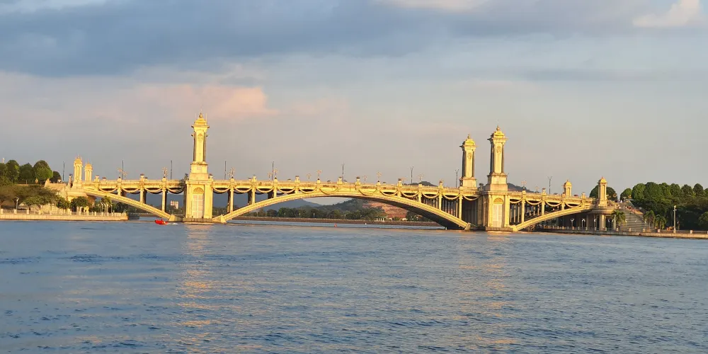 布城湖遊船計畫依托馬來西亞行政首都中心水域展開,環湖航線串聯起現代建築與濕地生態景觀。這片佔地650公頃的人工湖由三條河流交匯形成,電動遊船從湖畔碼頭出發,途經九座特色橋樑構成的"水上畫廊"。雙層觀光船配備多語言導覽系統,全景天窗設計確保遊客360度觀賞沿岸景緻。