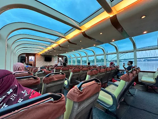 航線北段可近距離觀察鋼鐵結構的布城大橋,其雙拱肋造型與首相府穹頂形成幾何呼應。南向航行時,粉紅清真寺的玫瑰花崗岩穹頂倒映水面,與對岸植物園的鳳凰木花海構成色彩交響。