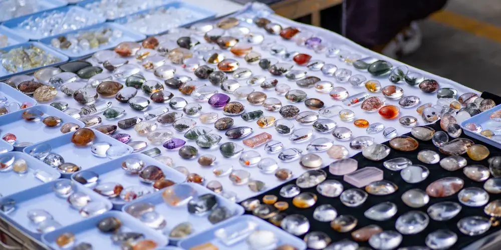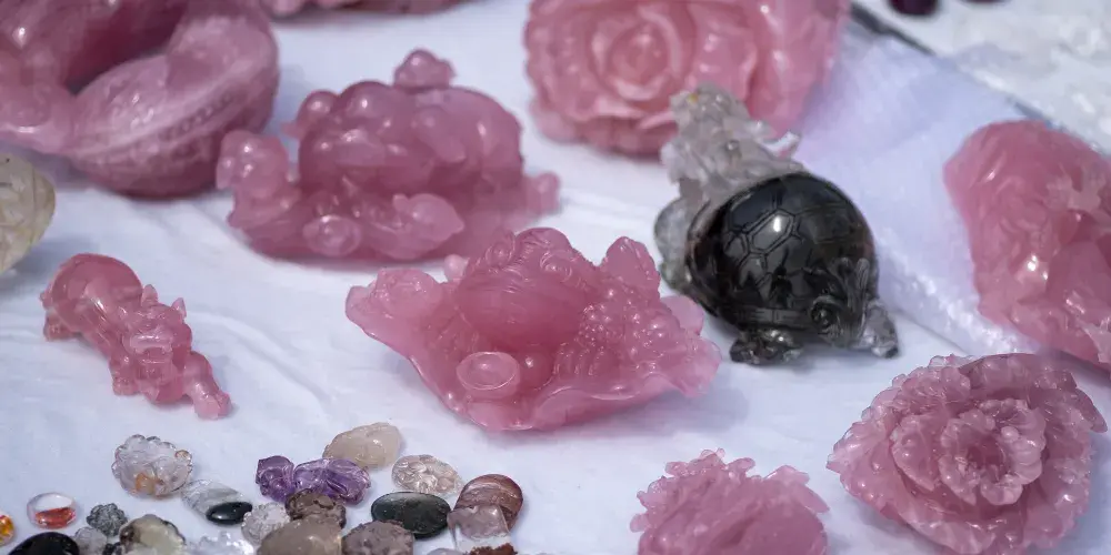 東海開採水晶已有三千多年的歷史,這裏素有“水晶之鄉”之稱。現在水晶的收購量佔全國產量的1/2。世界水晶之王出自東海。水晶城6000多平方米的交易大廳四處晶光閃閃,如同一個透明的宮殿。這裏的水晶以白色為主,也有煙色、茶色、黃色等。水晶製品有項鍊、手鍊、戒指、水晶石、工藝品等。