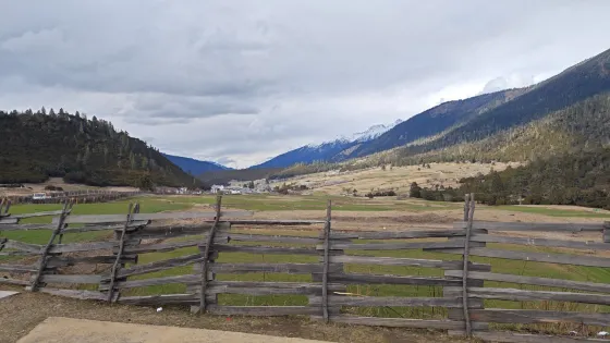 生態旅遊小村,就在魯朗鎮邊上。一個被雪山、森林環抱的村莊,中間的地被一個個木柵欄圈了起來,馬牛羊在裏面悠閑啃食野草,球狀的小花靜悄悄的開放,是西藏的另一種風景。