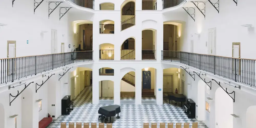 捷克音樂博物館是17世紀比較典型的巴洛克式風格的建築,最裡面有一個美麗的庭院,景緻優美,環境非常不錯。館中收藏了不少提琴,吉他,琵琶,小號,長笛和口琴等樂器,所以館內經常有開放以樂器為主題的展覽,展示自古以來人與樂器的曆史和關係。