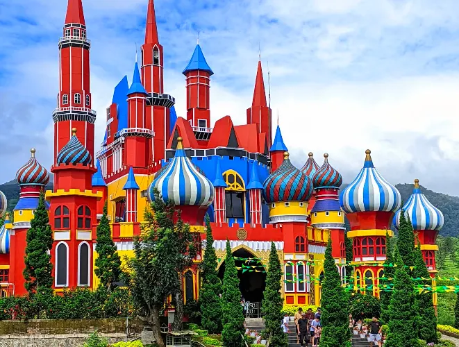 Florawisata D'Castello 是位於印尼西爪哇省蘇橫地區的一座獨特的花卉主題樂園,因其豐富的自然景觀和獨特的園藝設計,成為了遊客的熱門目的地。這裡是一個融合了美麗花卉展示、休閒娛樂與家庭活動的多功能景區,適合所有年齡層的人群,特別是喜歡大自然和園藝的遊客。
