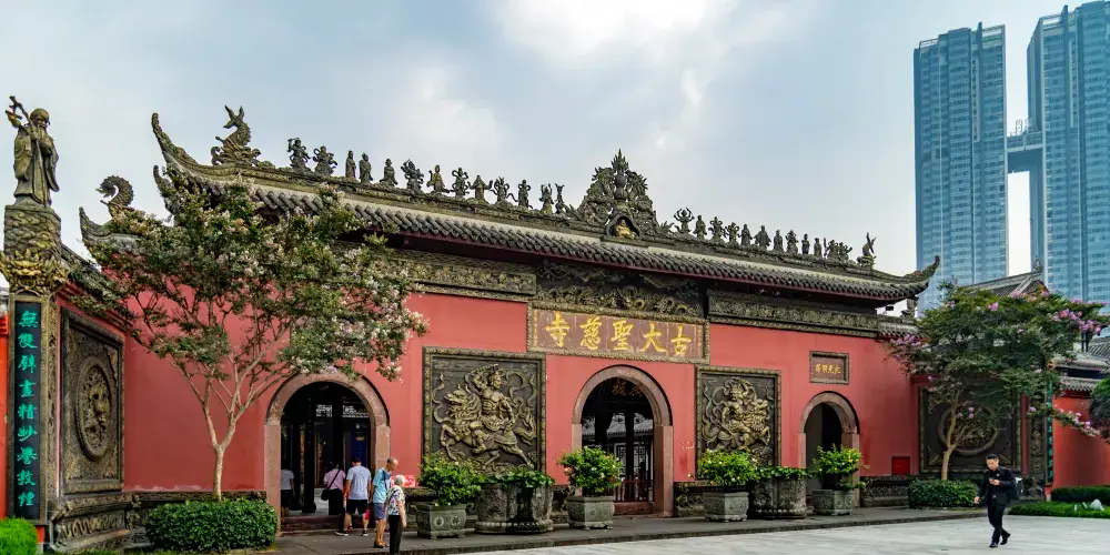 文殊院位於青羊區,始建於隋朝,康熙年間重建後,稱文殊院。院內供奉着大小300餘尊佛像,有鋼鐵、脱紗、木雕、石刻、泥塑等多種材質。其中有一尊緬甸玉佛,來自緬甸,很是珍貴。