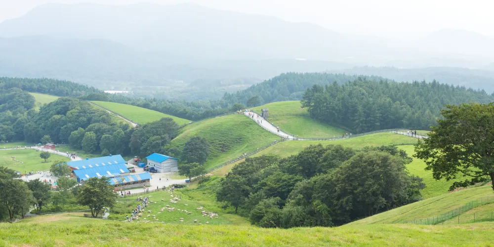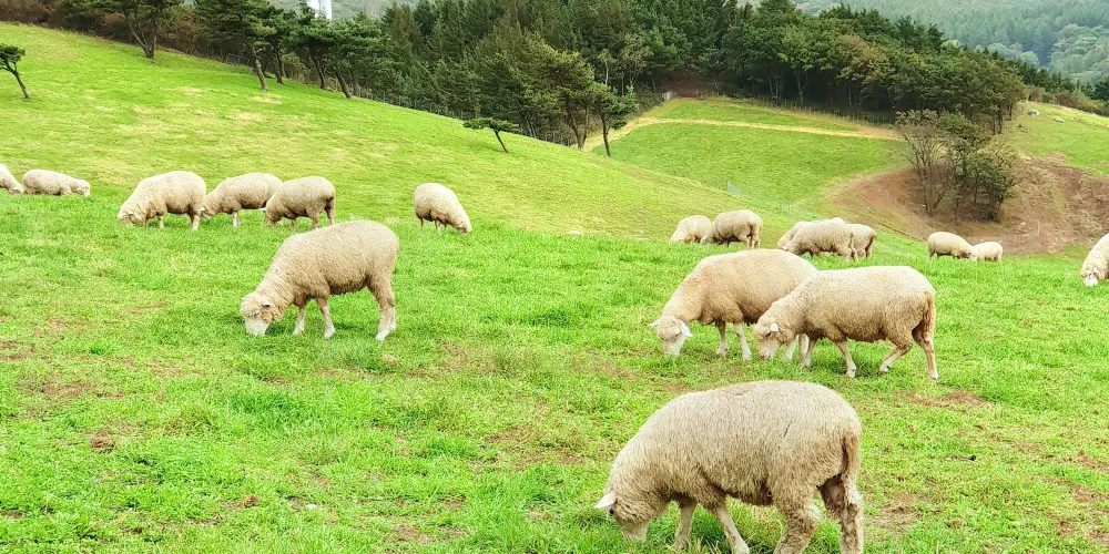 佔地約195平方公里的大關嶺羊羣牧場是一個放牧着200多衹羊的小型私人牧場。雖然平昌郡內大大小小的牧場不少,但衹放羊的牧場就僅大關嶺羊羣牧場一家。羊羣牧場較大的看點當然就是那200多衹羊兒組成的大軍啦!悠閑自得散步的、埋頭專心吃草的、三三兩兩打堆的…;…;抬眼望去,滿目都是羊兒的身影。放牧羊羣的時間每年稍有不同,但一般都在5月初到10月末之間。而每年4月左右,牧場會為羊羣剃毛。不過你想要觸摸羊羣卻不太容易,因為羊天生是膽小易受驚嚇的動物。你可以選擇參加“餵羊”體驗項目,購買乾草餵食這些可愛的小動物們。