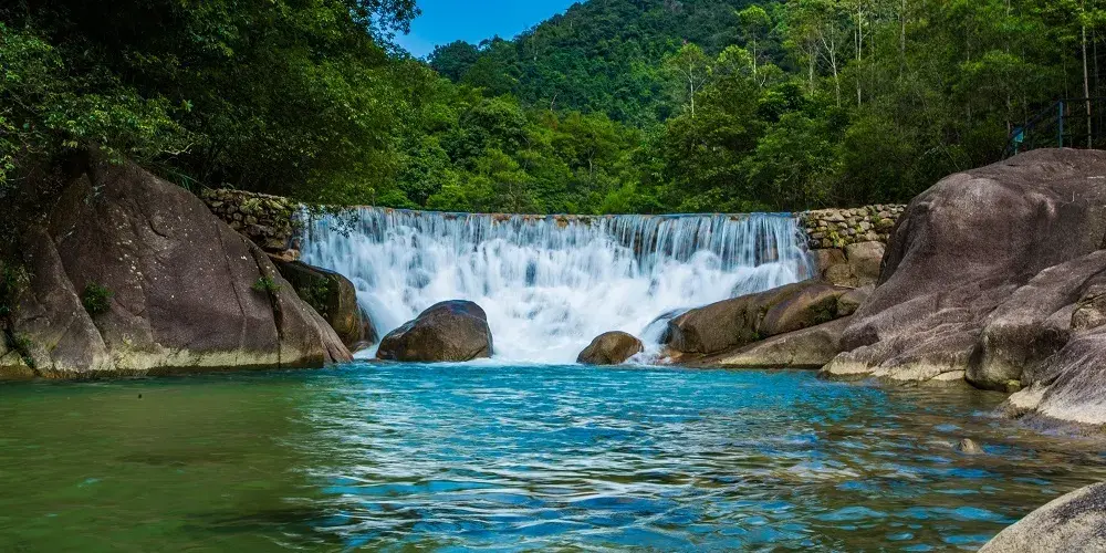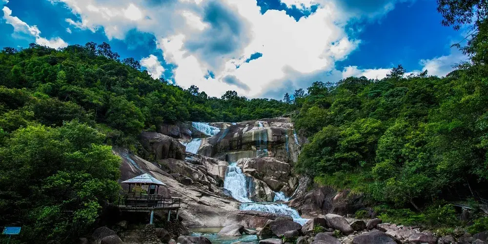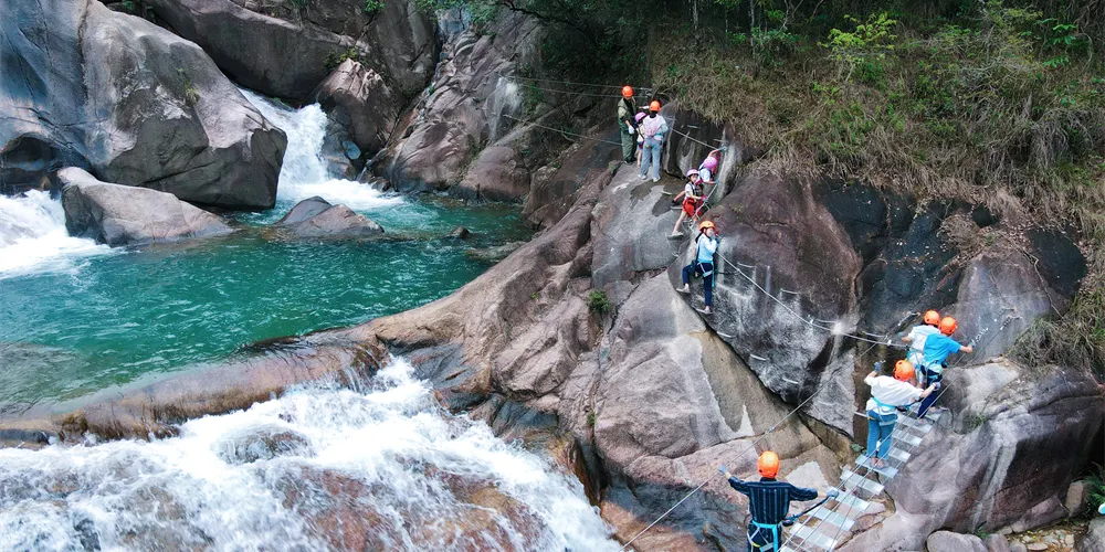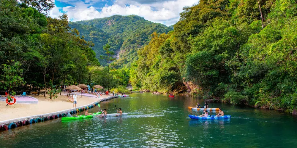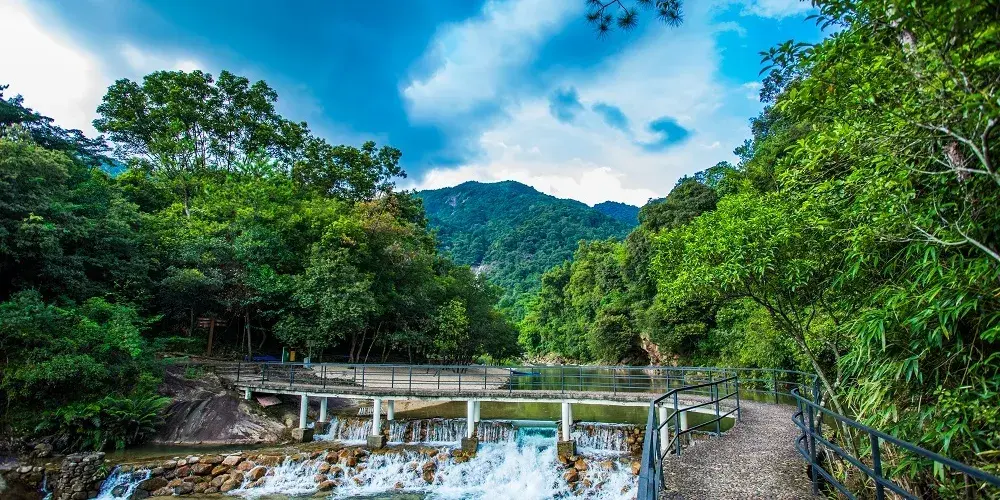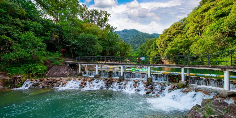 大豐門風景區是錦繡香江集團旗下項目,大豐門景區像一塊碧綠的翡翠鑲嵌在白水仙瀑景區與南昆山景區之間,北回歸線穿越其中,面積達38平方公里。身臨其中,可以「遠眺白水仙瀑之雄、近攬南昆山脈之秀」,這裡遍佈奇峰秀水、峽谷激流、森林湖泊、冰臼奇石,山泉瀑布隨處可見,景區有瀑布飛拉達攀岩、峽谷溯溪、極限漂流、嶺南五色湖、大自然秘境沙灘、皮划艇漿板、峽谷溪降等項目,成為了廣州增城知名遊玩的景區之一。