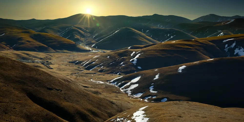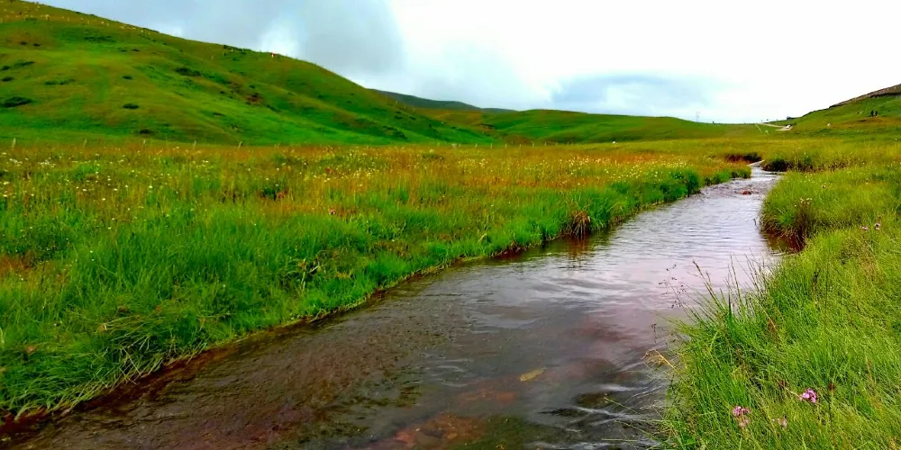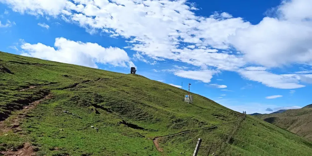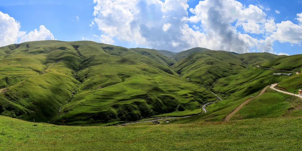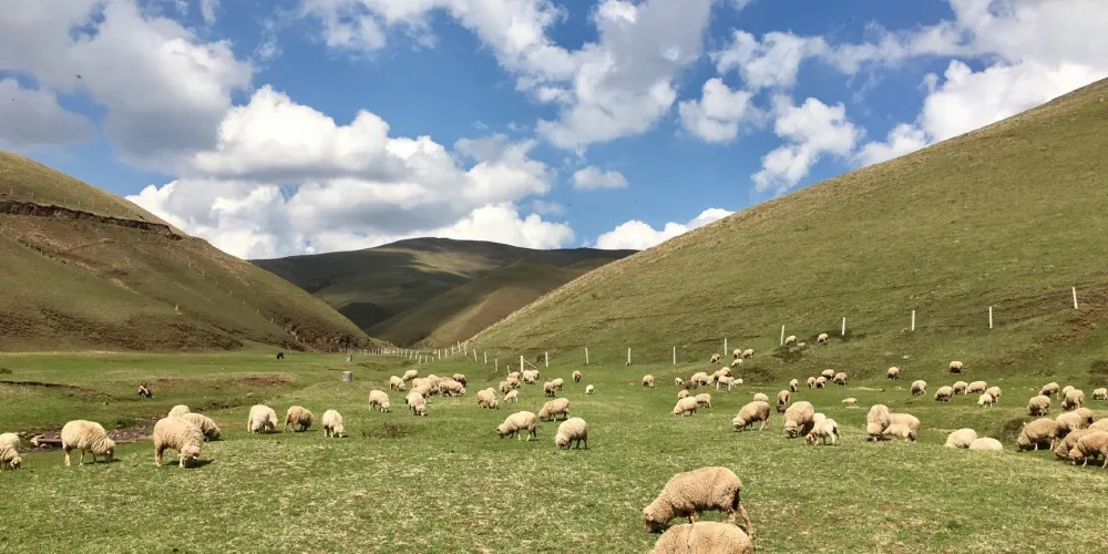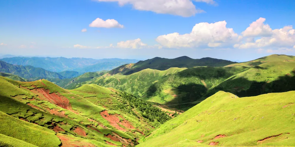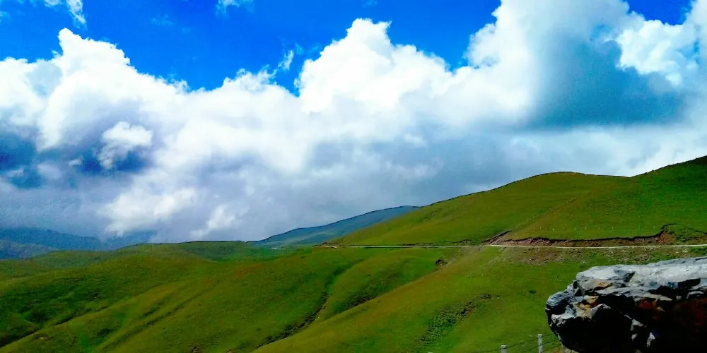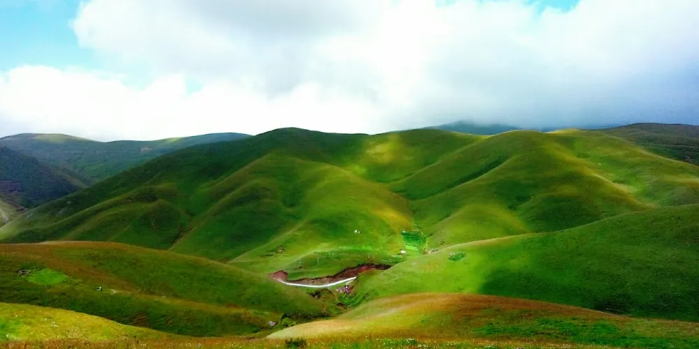 大海草山位於會澤縣大海鄉東南部,屬烏蒙山系主峰段,草山地勢平緩,廣闊無邊,屬亞高山草甸。春天山花競相開放,香氣撲鼻;夏天綠草茂盛,牛羊成群;秋天藍藍的天上白雲朵朵;冬天遍地白雪,素有云南的“新西蘭”之美譽。