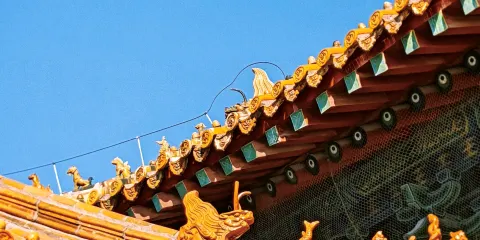 整個岱廟是按照古代帝王的宮城形制而營造的,高築的城堞、宏偉的殿宇,處處彰顯着古代的廟宇的氣派。由南向北進入岱廟,可依次經過遙參亭、岱廟坊、正陽門、配天門、仁安門等主要建築,然後到達天貺殿。其中高大的正陽門是進入岱廟的正門,古時候只有帝王才能從此門進入。