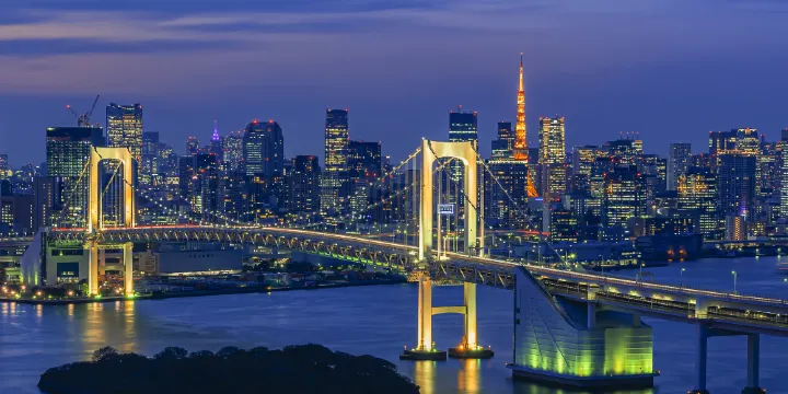 台場漂浮在東京灣上,是江戶時代建造的填海地。目前,這裡已成為年輕人喜愛的娛樂場所。這裡有東京都很少見的人工沙灘,從海濱長廊可以看到彩虹橋和東京鐵塔。享受散步、購物和美食。常常會舉辦限時活動,所以一定要去看看。