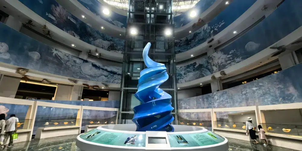 珊瑚世界場館:珊瑚科技祕境,身臨其境的水族海底花園。2021年,珊瑚世界場館全面改造升級,集炫酷與智慧於一體,將高科技與古老海洋生物完美搭配,內有來自世界的100餘個珊瑚礁、魚類等生物羣,六大核心遊賞區域、高科技LED屏,觸控導覽系統、全息影像等數字多媒體技術,帶遊客“趣”玩不一樣的科普海洋。