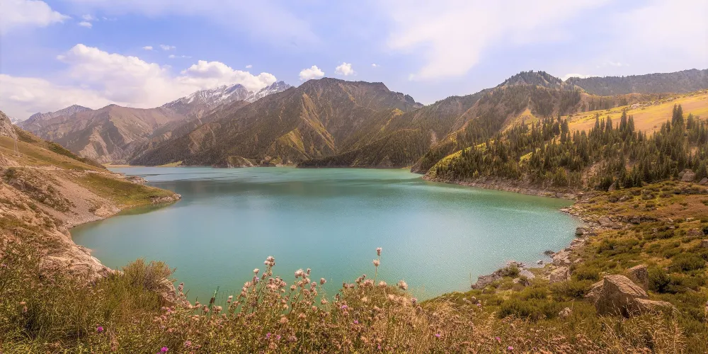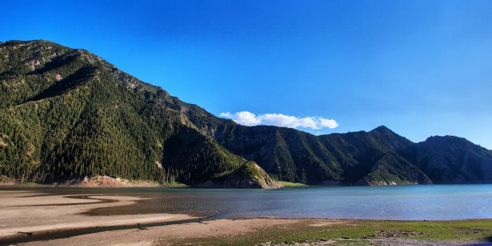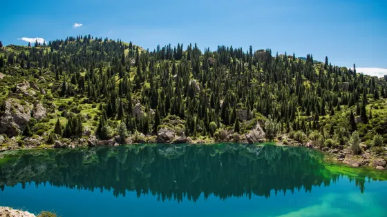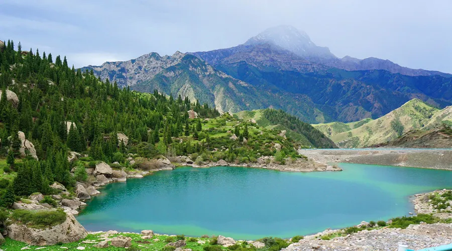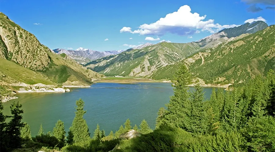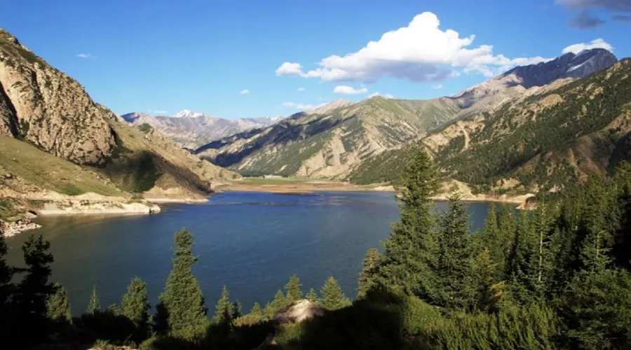 從庫車出發,沿著獨庫公路北上120公里進入天山腹地。在翻越鐵力買提達板之前,路兩邊有一大一小兩個高山湖泊,這就是大、小龍池。大龍池旅遊風景區水面面積約2平方公里,四面環山,山上白雪皚皚,終年不化,雪線以上生長著名貴中藥材-雪蓮。山下青杉翠柏,綠草如茵,牛羊成群,牧民的氈房點綴其間,偶爾還能看到雪雞、黃羊和雪豹。