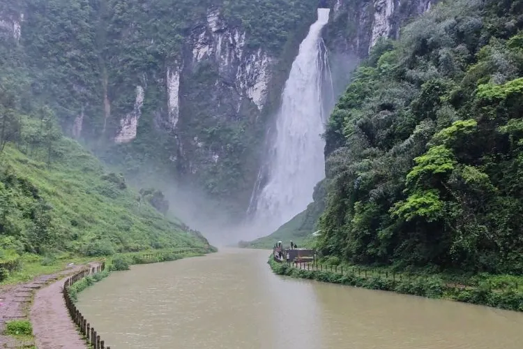 大龍洞風景區位於花垣縣補抽鄉境內,距吉首市41公里,沿矮大公路上行22公里即到達景區。大龍洞風景區是吉首市母親河峒河的源頭,是雙龍風景區的核心景區。源頭水自山腰洞口噴發而出,水響聲勢浩大,播聲聞達到數裏之遙。瀑布落差208米,寬度88米,十分壯觀。
