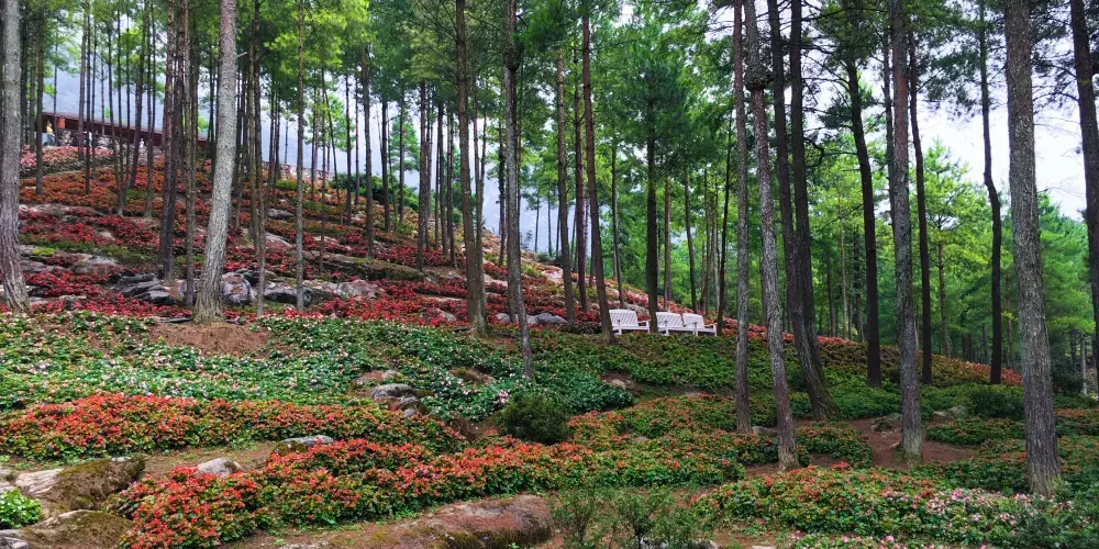 大木林下花園位於重慶市涪陵區大木鄉。是涪陵區打造的大木花海景區的三大核心景點之一。它與花田、花海不同的是,其利用喀斯特地貌,形成了林下花海奇石景觀,非常美麗且獨具特色。園內擁有鬱金香、杜鵑花、繡球花、海棠、百合等珍奇花卉,營造出了四季各異的景觀。