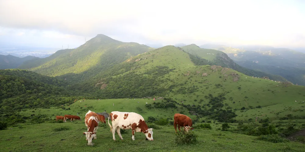 大姆山草場位於福清市南嶺鎮大山村。這裡適合與朋友小聚,開車登上山頂,可以看到這裡的藍天草地,使人心情愉悅。山頂滿是大片的草原連綿幾個山頭,由於臨近海濱,山上風大氣溫略低,站在山頂能看到長樂一帶的海岸線,草原十分遼闊,景色迷人。