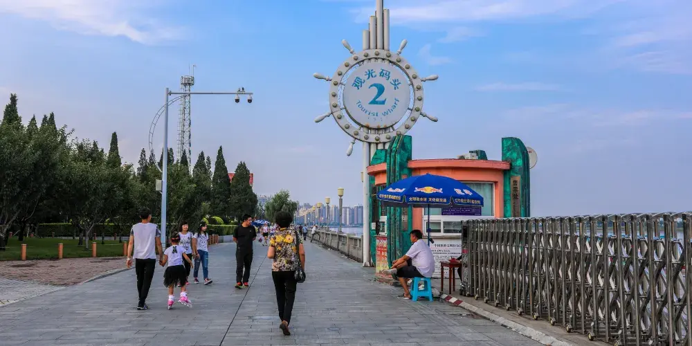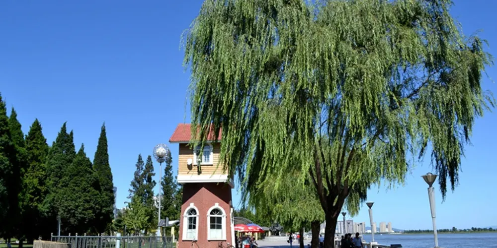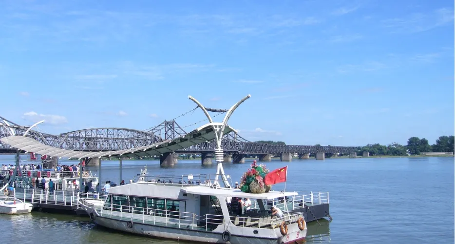 鴨綠江是中朝兩國的界河,但兩國的國界不是以主航道為界,而是對方的岸邊,這也是世界上少見的不以主航道為界的界河。在此乘船遊覽鴨綠江,不僅可以欣賞到見證了抗美援朝戰爭的鴨綠江斷橋,還能一窺朝鮮的異國風光,近距離可以看到勞動公園、造船廠及男女士兵站崗巡邏的身影。