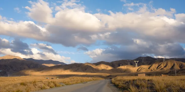 當金山所在的阿克塞哈薩克族自治縣位於甘肅,青海,新疆三省(區)交界處,東至燕丹與肅北縣接壤,北依催木圖山與敦煌市為鄰,南面的賽什騰山與青海省毗連,西面的芨芨台與新疆維吾爾自治區的戈壁相望,總面積3.3萬平方公里。當金山口以西是阿爾金山,以東是祁連山。越過3800米的當金山口,就算進入青海了,視線豁然開闊,一條望不到頭的路筆直指向盆地中央,路兩邊的電線桿和光纜溝使公路的視覺效果拓寬了20倍。昔日屬於人跡罕至,飛鳥不駐之地,唯有一條寂寞公路伸向遠處雲霧繚繞的當金山,彷彿眼前是中土大地上的一條通往神祕世界的通道。