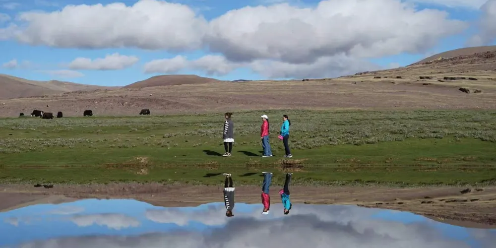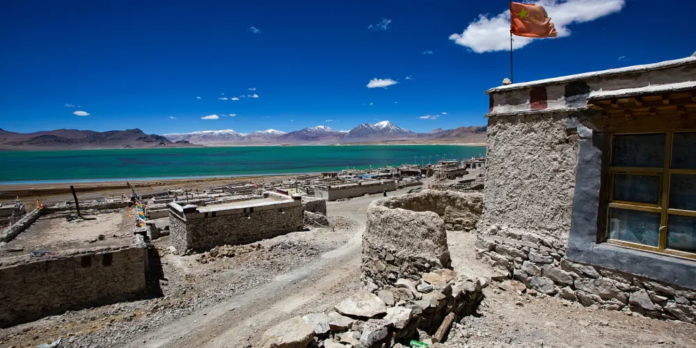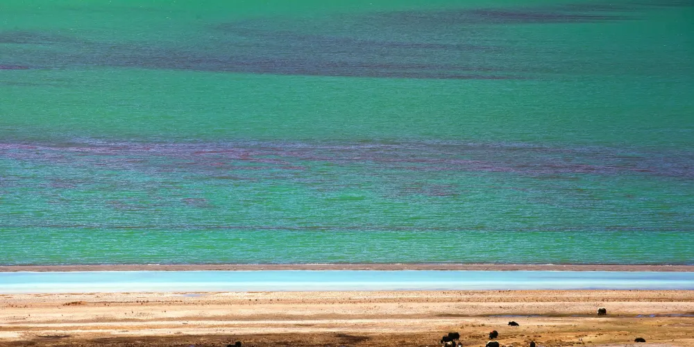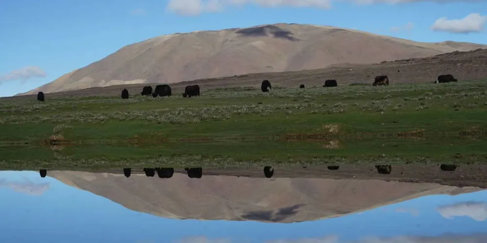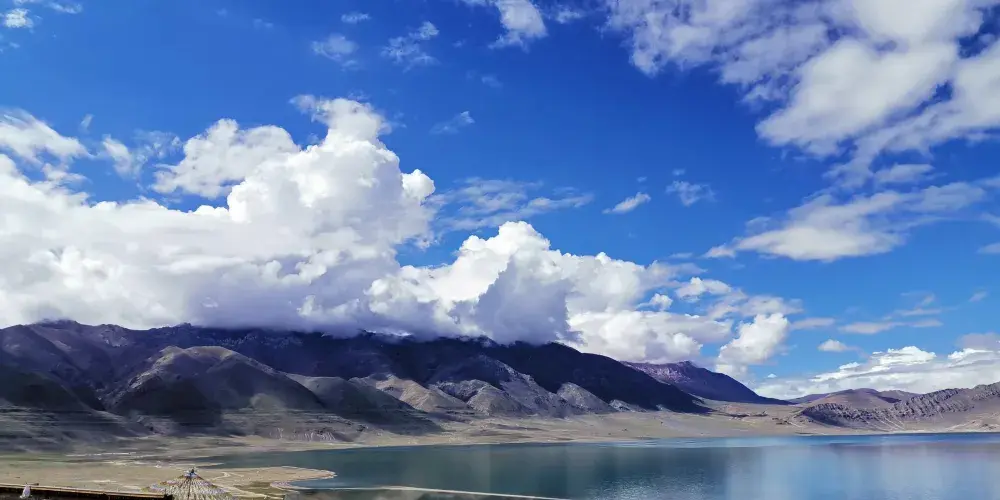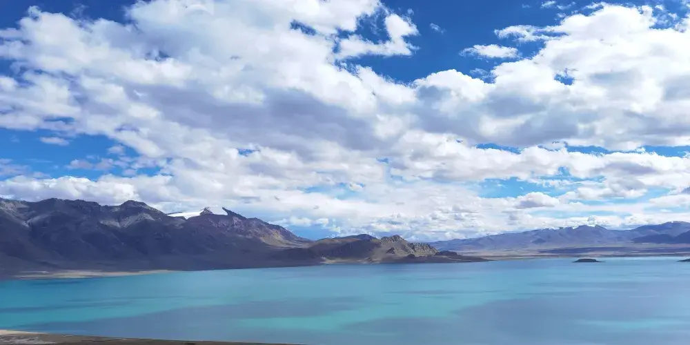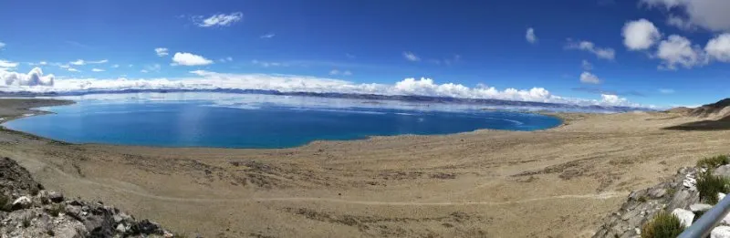 這裡面積相比當惹雍錯小很多。但是湖面風光怡人,水鳥成群結隊,羊群悠然穿行,景色宜人。