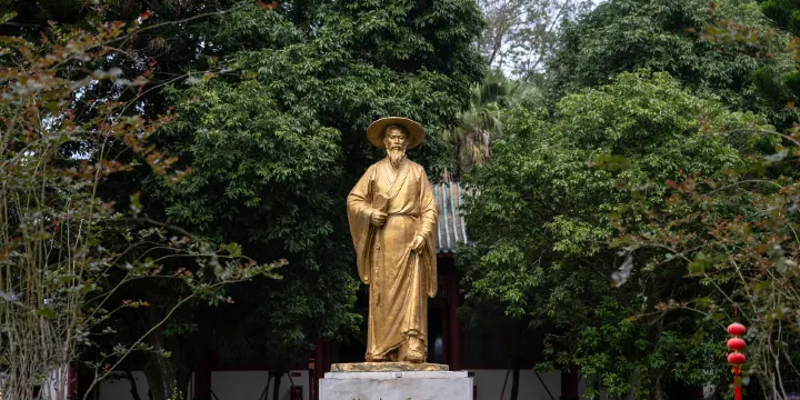 儋州東坡文化旅遊區,位於儋州市中 和鎮東郊,系北宋大文豪蘇東坡居儋三年期間講學會友的場所。載酒堂原址為當地人士黎子云的宅地。東坡一日與昌化軍(即儋州)使張中同訪黎子云,與當地人士相聚一起。眾人提議,為方便東坡講學會友,開化地方,請在黎子云處建一講堂。東坡欣然讚許,併為起名曰“載酒堂”,取《漢書·楊雄傳贊》“載酒餚,從遊學”之義。據元代儋州主簿徐智《載酒堂記》,載酒堂始建於北宋紹聖五年(1098年),也就是東坡於紹聖四年7月到儋半年多之後。 自北宋紹聖四年(1097年)7月,蘇東坡從惠州被貶至儋州之後,至元符三年(1100年)6月,蘇東坡始遇赦北歸。 蘇東坡居儋整三年,期間,一代文宗躬耕自處,苦心勸農,移風易俗,敷揚文教,著書立説,為世人所敬仰。當時,在東坡精神的感召下,儋州直至整個海南讀書學文化的風氣逐漸養成。接受過他教化的瓊州士人姜唐佐在他北歸後的第二年即成為海南第一位舉人,而在他北歸後的第九年,昌化軍(儋州)人符確考中進士,從此海南“大破天荒”,結束了沒有進士的歷史,成了海南第一位進士。所以海南有史以來,均把蘇東坡作為海南文化開發啟蒙的重要功臣,而他對於儋州文化的啟迪之功,更為世代所傳頌。“瓊之有士始乎儋,瓊之士亦莫盛乎儋”,這正是蘇東坡對於儋州文化開發的不朽之功。今天,東坡書院已經成為各方人士以及儋州人民世代瞻仰的文化聖地。東坡書院也於1996年被授予重點文物保護單位,為海南重要的人文旅遊勝蹟之一。 東坡書院自北宋年間建成後,歷南宋至元初,堂久廢,無重修記錄。元代泰定五年春(1328年)儋州倅彭應雷即舊址重修建成。其後,明、清兩代直至民國初,多次重修、增設、改建。嘉靖二十七年(1548年),更名為“東坡書院”。自1950年,海南解放以來,儋州東坡書院在歷屆黨政領導的關懷下,歷經管理維修,得到有效保護。1982年又進行了大規模維修改建,面貌煥然一新。尤其在海南國際旅遊島建設規劃的驅動下,作為文保單位,東坡書院的建設更成為儋州市旅遊重點項目之一,近年得到更大的發展。2012年至2014年儋州市人民政府對書院進行大規模維修,包括大殿、載酒堂、兩廡廊、耳房、載酒亭、頭門、蓮池、護欄、欽帥堂等。2014年增設了服務接待中心(先已更改為東坡香文化館)、按星級標準完善了相關的旅遊服務設施。 東坡書院經過歷代維修和擴建,形成了現有面積25040平方米的建設規模。書院內設頭門、載酒亭、載酒堂、大殿、耳房、東西兩廡廊、陳列館、欽帥堂、懷賢亭、接待服務中心、望京閣、東坡私塾等仿古建築。院內還有東坡笠屐銅像和坐立銅像、春牛塑像、狗仔花、欽帥泉井、假山等景點。院內草木扶疏,鮮花掩映,書畫琳琅,古色古香,具有濃郁的“東坡遺風”。 東坡書院藏品豐富,現有名家字畫400多幅,歷代楹聯13幅,名匾10塊,歷代碑刻13通,明代陶器罐1個,元代石雕人1尊。此外,還有古典和近代圖書資料等。東坡書院內設固定展覽:東坡生平事蹟展(陳列館);東坡史料展(大殿);歷代碑和木刻展(載酒堂)。臨時展覽:國內外領導、專家學者關懷圖片展(東廡廊)及東坡墨跡展。 東坡書院眾多的展品、舒適的環境、濃厚的文化氛圍、豐富優美的歌舞表演是遊覽觀光的理想場所。 東坡書院歷史沿革: 東坡書院是北宋大文豪蘇東坡貶居儋州時講學和會友的場所。位於海南省儋州市中和鎮東郊,距洋浦港18公里。 東坡書院歷經滄桑,幾經風雨,在歷朝歷代反覆維修、擴建和保護下,形成當今規模。現將其歷史沿革概述如下: 東坡書院原名載酒堂,始建於北宋元符元年(公里1098年)。初為茅屋。 元泰定三年(公元1326年)於載酒堂後側增建東坡祠,並從桄榔庵移坡公像入祠中祀奉;泰定四年(公元1327年)軍判彭應雷探尋舊址,拓基重建酒堂,仍為茅屋。 明代多次維修。永東七年(公元1409年)易茅屋為瓦屋,且於正德年間(公里1506——1521年)定編一門子奉祠事,萬曆二十三年(公元1595年)增建載酒亭,欽帥堂,欽帥泉並添置欽帥泉碑刻。 清代亦多有維修。且於光緒十九年(1893年)增建頭門、廡廊、耳房。 民國二十三年(公元1934年)再度重修,並新建東坡公園及東坡公路(當時的東坡公路為土路)。 因明代嘉靖年間(公元1522——1566年)開始有學者在載酒堂設帳講學,弘揚東坡遺風。故有“東坡書院”之稱。 全國解放以後,人民政府曾多次撥款修繕.雖然“文革”期間又被“摧殘殆盡”,但一九八三年至一九九六政府連撥鉅款分別重修了載酒亭、畔池、大殿、載酒堂、頭門、東西兩廊、耳房、欽帥泉、書院圍牆,完善了東、西園林化建設,立了東坡笠屐銅像,建陳列館、迎賓堂、望京閣、欽帥堂等。1984成立了專職文物保護機構——東坡書院管理處。負責東坡文化史蹟的保護管理和科學研究工作。 1996年11月20日,公佈東坡書院為全國第四批重點文物保護單位。東坡書院規模:東坡書院現圍牆內面積25040平方米,圍牆外頭門前面的東坡廣場面積10.6畝。