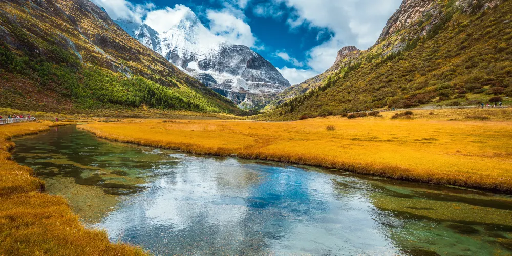 稻城亞丁,也叫:亞丁自然保護區,當地人習慣稱為亞丁景區。位於甘孜州稻城縣南部,主要由仙乃日、央邁勇、夏諾多吉三座神山和周圍的河流、湖泊和高山草甸組成。景區內不僅有壯麗神聖的雪山,還有遼闊的草甸、五彩斑斕的森林和碧藍通透的海子。如當地虔誠的藏民一樣,徒步轉山是感受亞丁風光的較好方式。不過由於亞丁保護區海拔較高,全程徒步還是需要相當的體力。