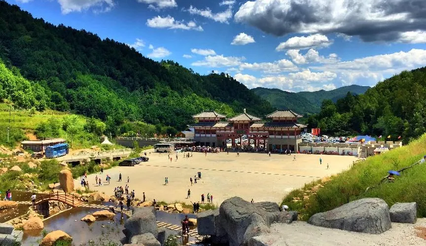 山門:整座山門高近20米,坐落於道須溝風景區溝口,是一座仿漢代歇山廡廊的建築,風格特點是氣魄宏偉、嚴整開朗,達到了力與美的統一。