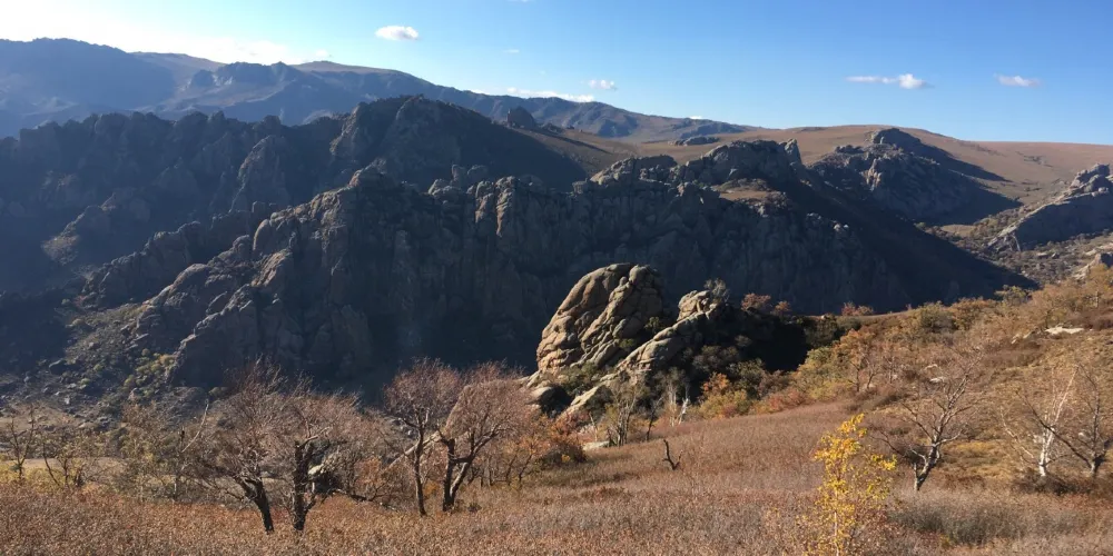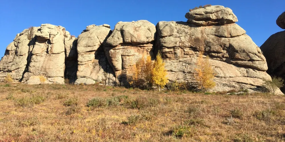 遺跡公園是由滲金溝和關東峪及大青山組成。公園裡大塊的山石威嚴聳立,很是壯觀。