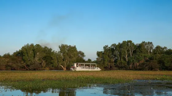 4.8 分22 則評價距離市中心 距離市中心24.3公里黃水河是一片生長着茂盛雨林的大濕原,繁衍着眾多本土動植物羣落,是世界遺產卡卡杜國家公園(KakaduNationalPark)中的知名景點。搭乘遊船進行黃水河巡遊(YellowWaterCruise),遊覽這個死水潭兩岸的景緻、觀察野生動物,是卡卡杜值得體驗的活動之一。遊船的適宜季節是4月-11月的旱季,這時候氣候比較穩定,動物們大多都愛聚在水邊,因此看到它們的機率也會大大提高。尤其在7月-10月間,大面積的蓮花覆蓋著水面,遊船撥開荷葉前進更是充滿了樂趣。黃水河遊船的出發地位於科因達(Cooinda)的GagudjuLodge酒店,購票後乘坐穿梭巴士至搭船點。你可以預約1.5小時或2小時的遊船行程,在旱季每天有6各班次,清晨的2小時遊船可以領略到黃水河破曉的獨特風光,這時鳥類比較活躍,光線很好。傍晚前的末班也值得推薦,從白天過度到黃昏的美景一定會讓你難以忘懷。遊船撥弄水草前進,蔚藍的天倒映在清澈的河面上,沿途你可欣賞生長在水中的樹木及綻放的花朵,聆聽各種蟲鳴鳥叫,還能不時地見到鱷魚、澳大利亞肺魚等從船側經過,運氣好的話更能目睹鵲雁、澳大利亞鶴、鸛、白腹海雕等不常見的鳥類。除了常規的遊船項目,你還可以選擇夜間遊船,欣賞星空下寧靜的黃水河,或者參加垂釣活動。