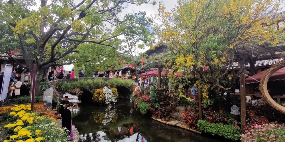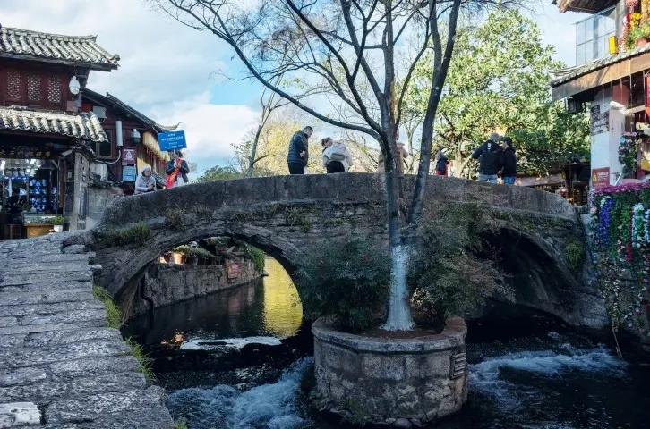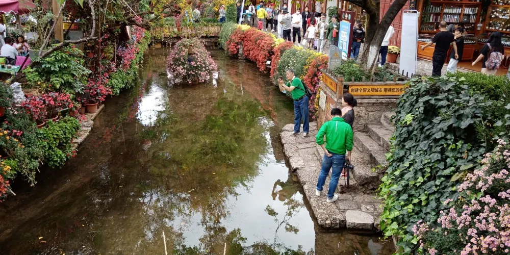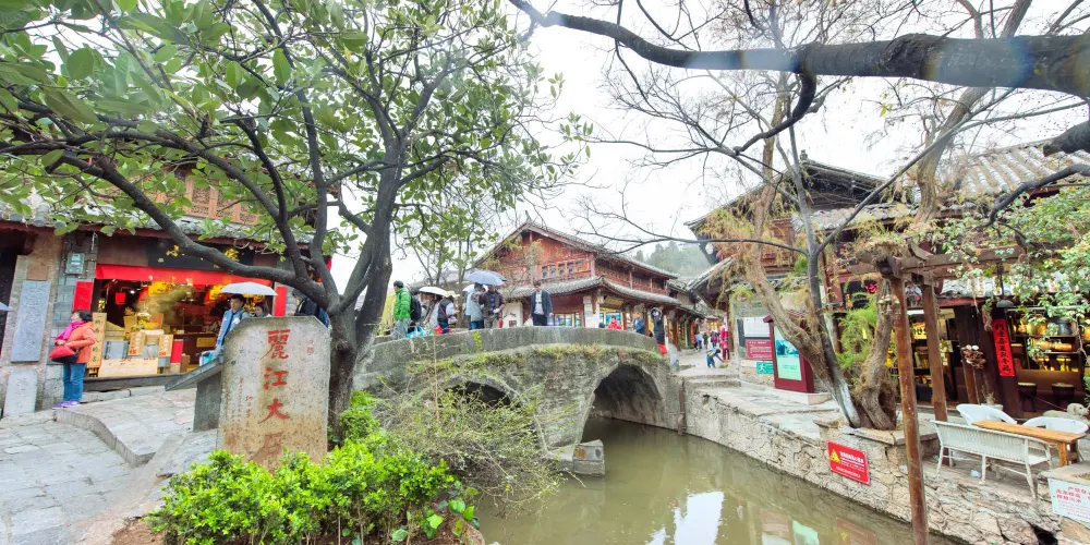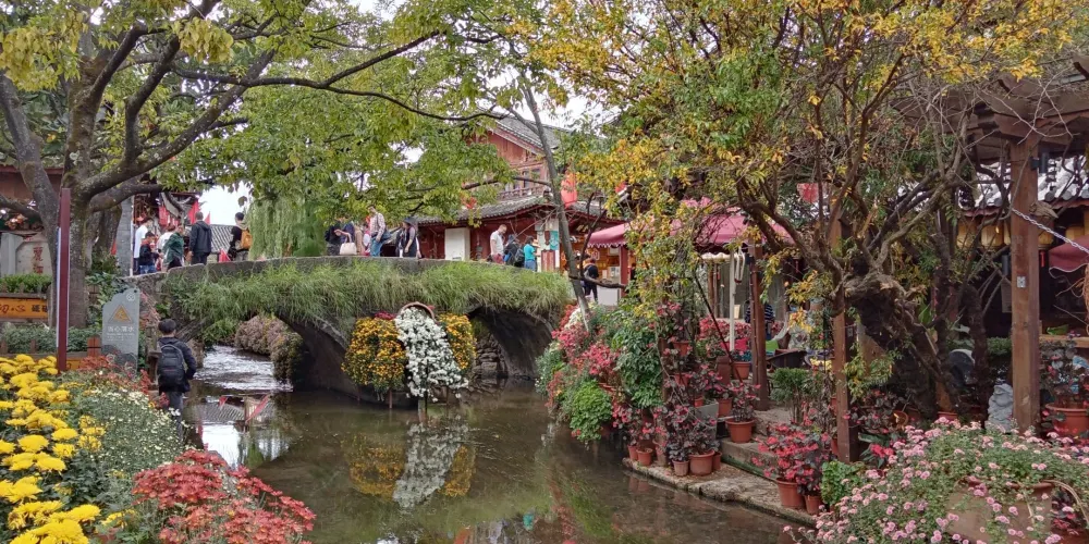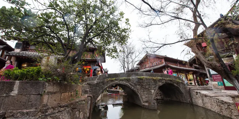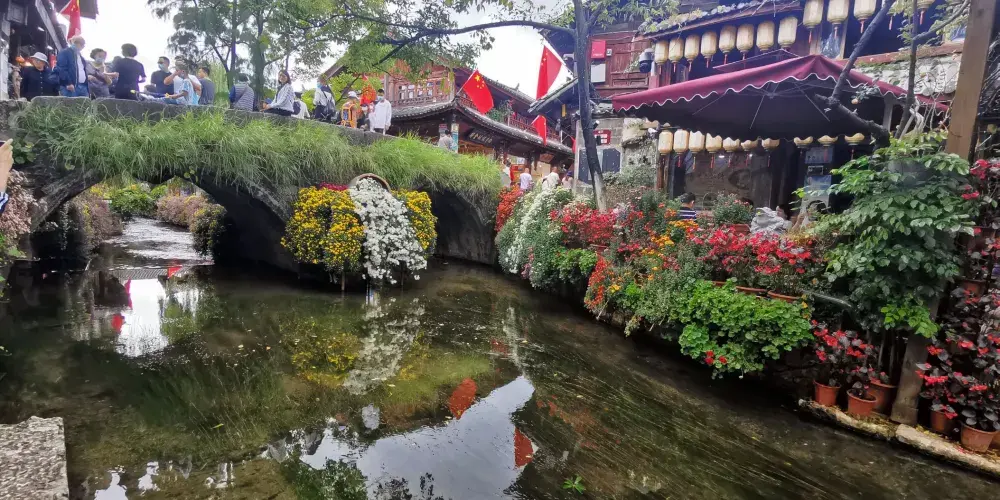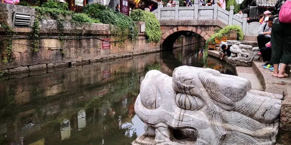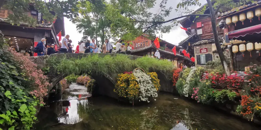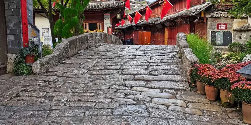 大石橋建於明代,距今已有數百年的歷史。它是古城中較大的石拱橋,是古城東西兩個部分的交通要道。橋上由於年代久遠,已經長滿了碧綠的植物。橋下河水的兩側,小小的石頭堤壩上也長滿了各種花朵,每到春夏季節五顏六色,非常漂亮。
