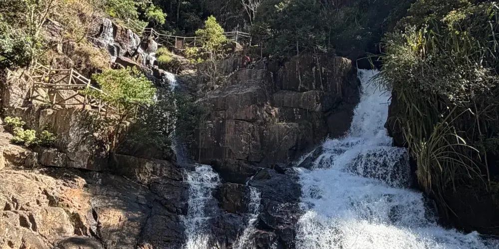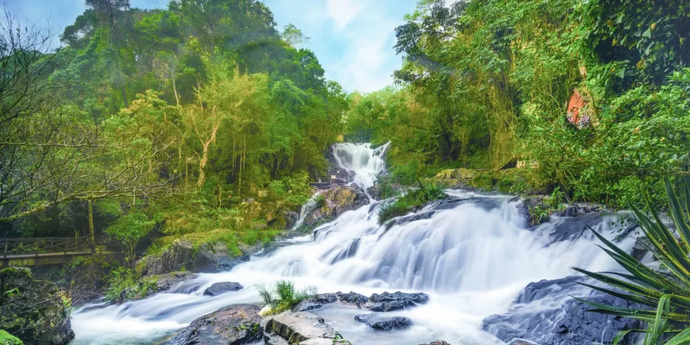 達塔拉瀑布位於胡志明市方向的20號國道邊緣,入口在山頂。進入景區後,先穿過熱帶雨林,然後沿著陡峭的下坡路才能看到位於半山腰的瀑布,您也可以乘坐纜車到達。沿途熱帶雨林風光迷人,隨處可見各式各樣的蝴蝶和鳥兒鳴叫。