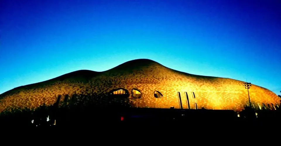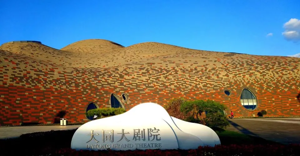 大同市大劇院建築外部呈不規則的起伏狀,採用了圓拱狀的屋頂設計,將立方體和格子體融入其中,很是新穎。劇院內設劇場、佈景室、控制室、排演廳等,是展示大同特色文化的窗口和大型文藝活動的舉辦地。主體建築地上4層、地下2層,包含1500座和800座的雙劇場結構,採用雲岡石窟元素與「凝固的彩雲」設計理念,外部造型呼應武周山山川脈絡,內部空間模擬雲岡洞窟樣式,外立面以陶土板及不規則幾何形態呈現,穹頂採用世界獨創薄殼結構。