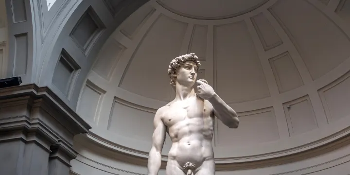 大衞像是文藝復興時代米開朗基羅的傑作,在1501年至1504年雕成。雕像為白色大理石雕成的站立的男性,高5.17米,約6噸重。用以表現聖經中的猶太英雄大衞王,每年會吸引約120萬人前去參觀。一開始,雕像被放置在舊宮前的廣場。1873年,為保護雕像,大衞像被轉移學院美術館的畫廊內。後來,佛羅倫薩政府也陸續展出二尊複製品,放在米開朗基羅廣場中央及市政廳的大門前。