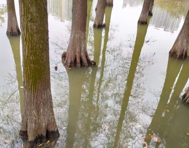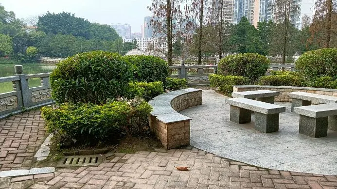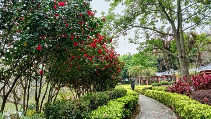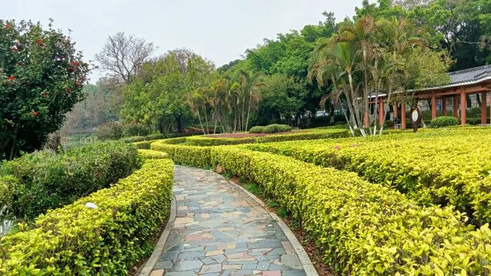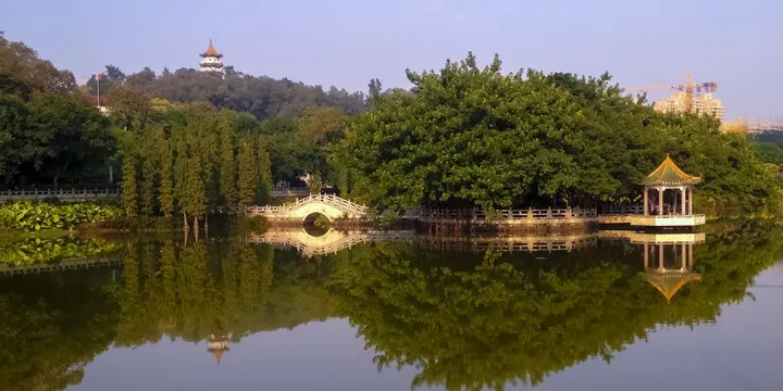 大旺公園依水而建,內有水杉、椰樹等眾多樹木,還有拱橋、觀景涼亭等景緻,環境清幽,景色宜人。