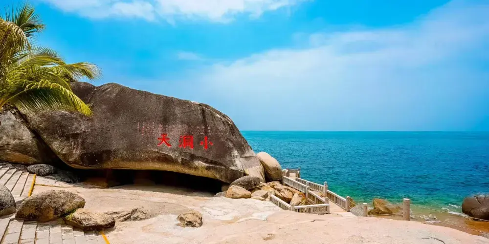 大小洞天位於三亞市西部的南山山麓,景區至今已有800多年曆史。大小洞天融匯了秀麗的海景、山景和石景,既可以看到“小洞天”、“海山奇觀”、“仙人足”等摩崖石刻,還能參觀號稱植物中的“活化石”南山不老松。