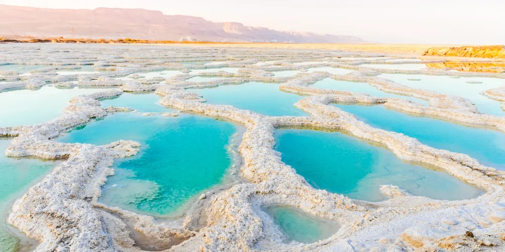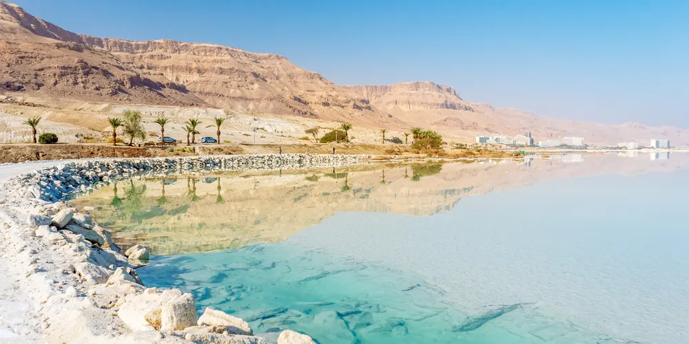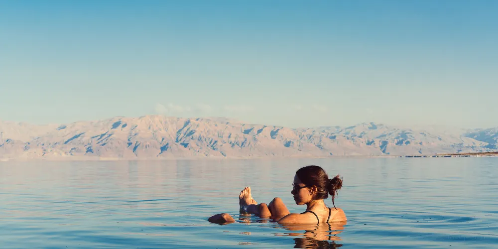 死海位於以色列、約旦和巴勒斯坦之間,遠遠望去,死海像一條雙尾魚,游弋在群山腳下。死海沒有潮起潮落,波瀾不驚。湖中及湖岸均富含鹽分,在這樣的水中,魚兒和其它水生物都難以生存,水中只有細菌和綠藻沒有其它生物,岸邊及周圍地區也沒有花草生長,故人們稱之為“死海”。也因為海水中的含鹽量過高,造成了比較高的浮力,所以人跳進死海裡不會下沉。死海是世界陸地表面較低點,有“世界的肚臍”之稱。