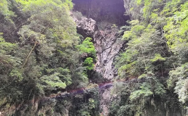 大七孔景區的妖風洞以其奇特的自然景觀和豐富的地質資源吸引著眾多遊客前來參觀妖風洞坐落在大七孔景區的核心區域,是一個天然形成的喀斯特溶洞。洞口並不顯眼,但一進入洞內,便能感受到一股強勁的風迎面撲來。這股風在洞內形成了一個特殊的氣流現象,彷彿有無形的力量在推動著空氣流動,因此得名「妖風洞」。洞內的風速和方向會隨著天氣和季節的變化而改變,遊客可以欣賞各種美麗景觀。妖風洞內的氣溫較低,風力較強,遊客造訪時需注意保暖與安全。洞穴外面是典型的喀斯特地形,石灰岩經過長期的溶蝕和侵蝕,形成了各種奇形怪狀的岩石和懸崖,遊客可以沿著步道探索這些地質奇觀,欣賞大自然的美好風光。