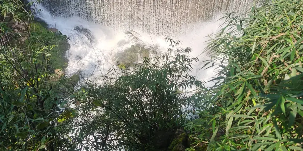 則評價68級跌水瀑布位於荔波縣小七孔景區內,毗鄰小七孔橋,源頭就在拉雅瀑布前。
