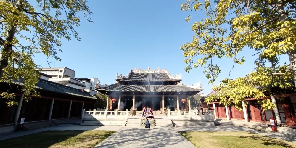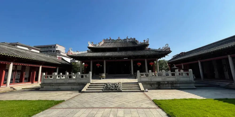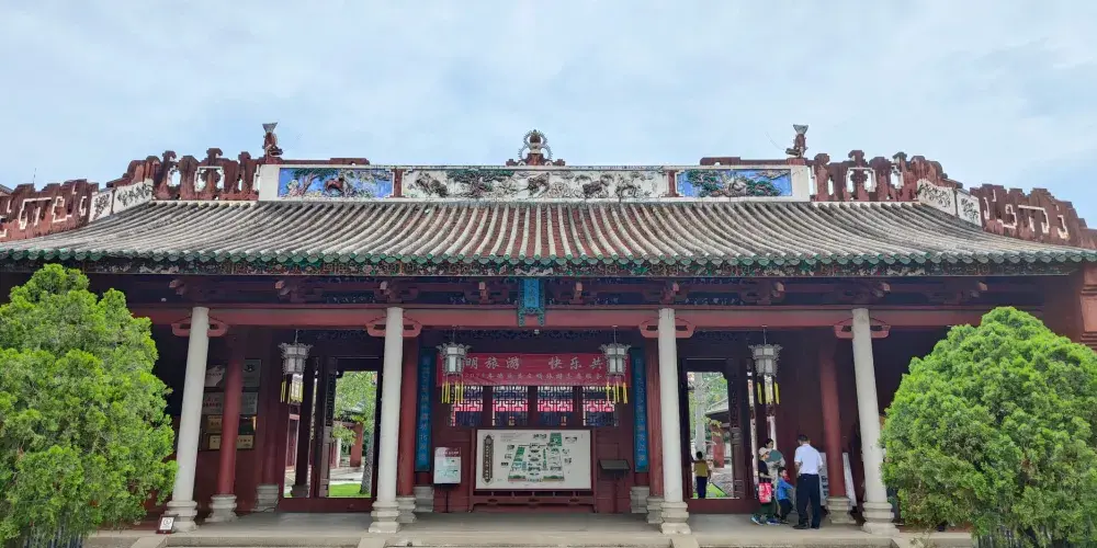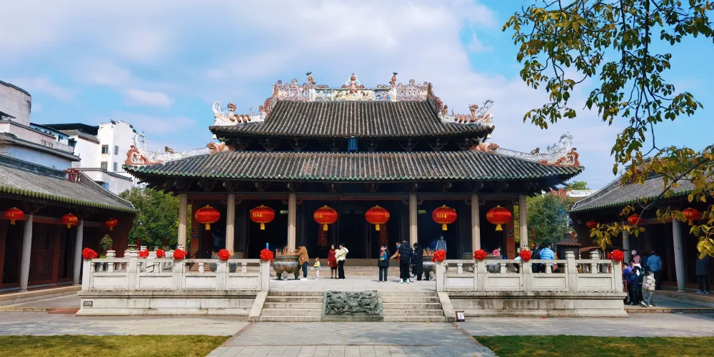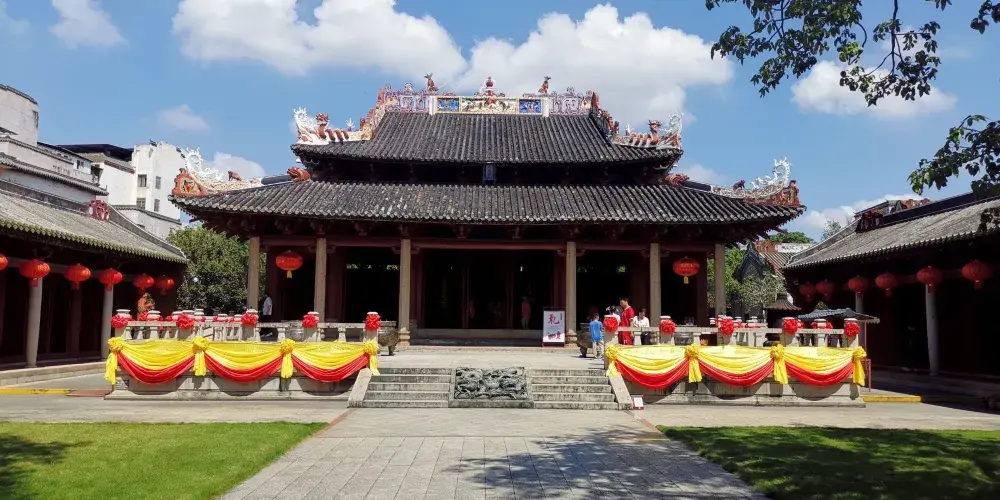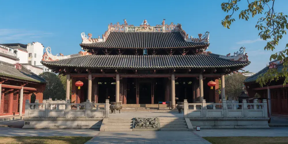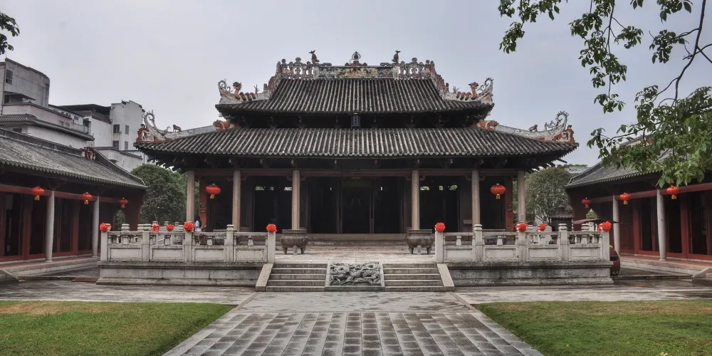 德慶學宮是我國南方現存比較古老的孔廟,是全國重點文物保護單位。其大成殿,對研究我國宋、元建築史有重要意義,是嶺南元代木構建築的瑰寶。學宮坐落於德慶縣城內的德慶孔廟,這座莊嚴的古建築群由大成殿、崇聖殿、杏壇等建築組成,大成殿設計者,打破了傳統廳堂那種“八柱撐空”的木樑架結構而採用“四柱不頂”的獨特形式以滿足建築物防災的要求。