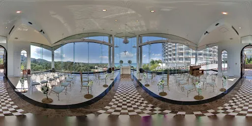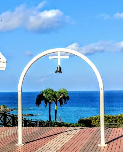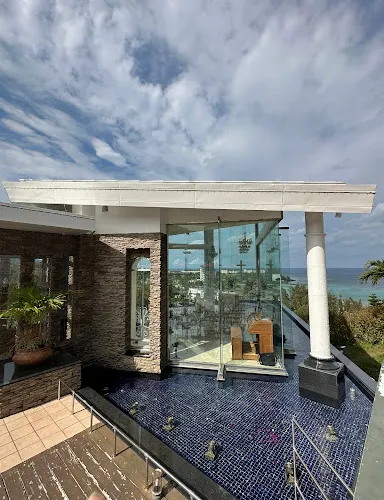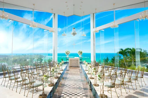 沖繩海洋鑽石教堂DiamondOcean是位於山丘之上的教堂,不直接鄰海,而能遠眺海洋與山林,將沖繩的自然風情盡收於眼底。360度的玻璃帷幕視角,讓人心裡漾起一片清涼。已經經營六年的DiamondOcean,曾是韓劇《原來是美男》的取景之地,DiamondOcean的教堂內裝有著古典的浪漫,在山海的祝福之下,許下給彼此的承諾。