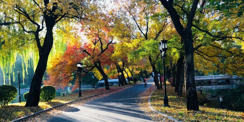 「讓我們蕩起雙槳,小船兒推開波浪…」,這首耳熟能詳的歌謠描繪的正是此處。北海位於故宮博物院西北側,與「中海」、「南海」合稱三海。公園曾是皇家園林,園內亭台錯落有致,湖畔林木鬱鬱蔥蔥,風光如畫。