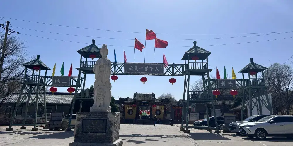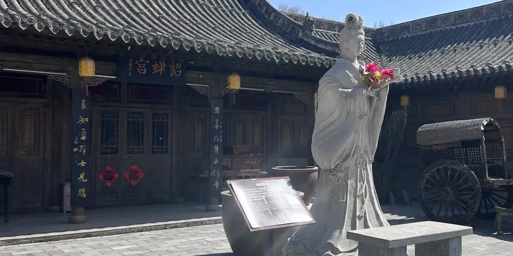 貂蟬故里位於忻州市忻府區頓村温泉度假村文化廣場,景區整個佔地60畝,呈縱向長方形,分為三層。