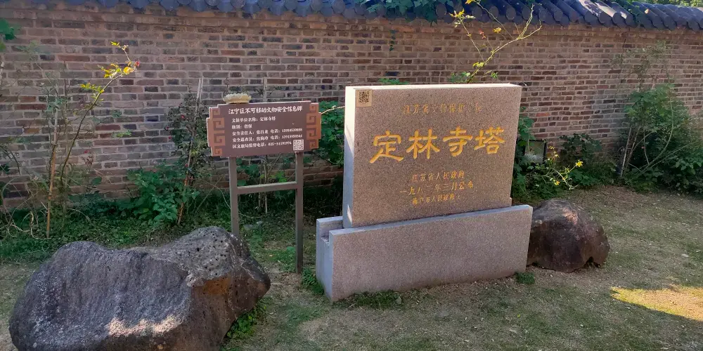 始建於南朝劉宋元嘉十六年(439年),外國高僧(竺法秀)在南京鐘山(今南京紫金山紫霞湖一帶)始建,南宋孝宗乾道時(1164~1173),高僧善鑒將“上定林寺”匾額移至方山,重建定林禪寺,與南京鐘山上定林寺在子午線上南北正對,同時建定林寺塔(此磚塔已有800餘年歷史,為目前南京曆史最久的樓閣式硬塔)專供佛像。曆史上,南定林享有“南定林、北少林”之說。