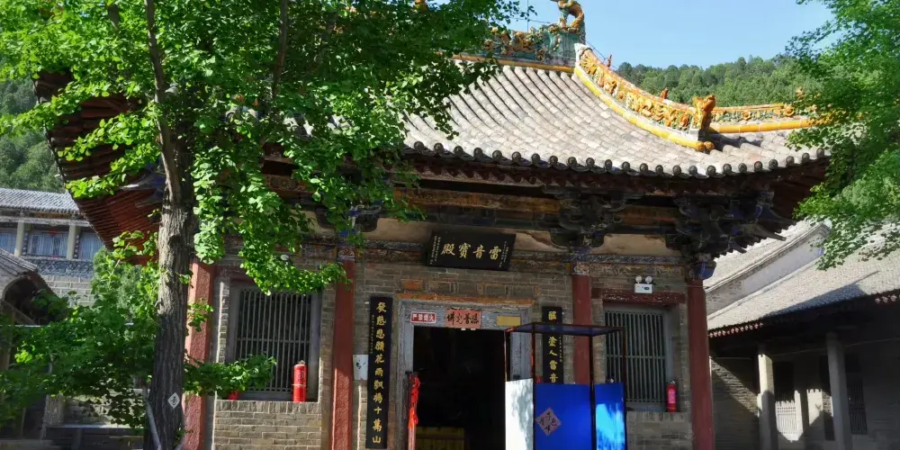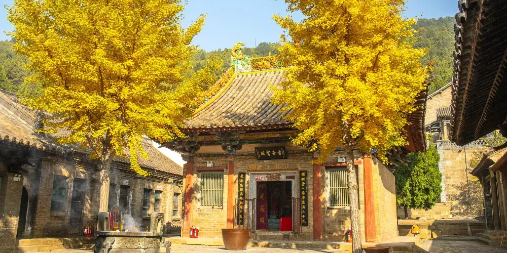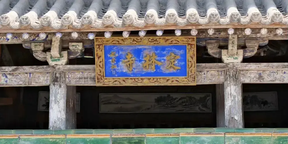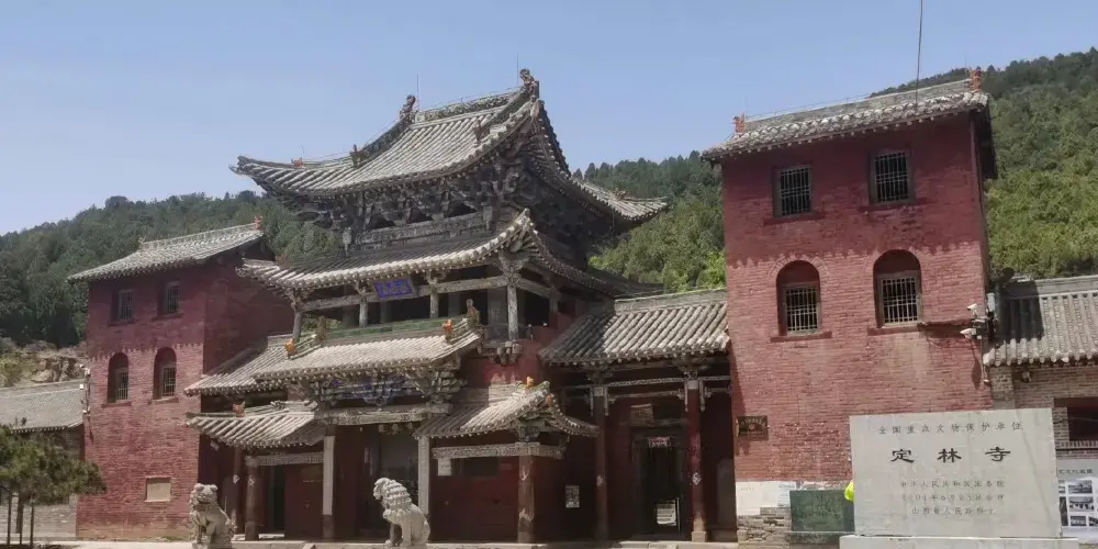 在高平市區東南5公里大糧山。峰巒重疊,松柏蒼翠。寺側有定林泉,寺名由此而得。寺址在山陽,美景寶剎交相輝映。寺中軸線上分居山門、雷音殿、三佛殿、七佛殿四進院。雷音殿鬥拱支簷,飛簷挑角,雕樑畫棟,精巧秀麗,古樸雄偉。後門枕石刻有「元延佑四年四月二十日記」字樣。殿前月台上豎有石雕八角形經幢兩座,均高4米,刻有經文、仰蓮、覆盆、寶珠頂。一為彌勒出生寶塔,北宋太平興國二年(977年)造;一為雍照二年(985年)造。其後善法、羅漢二堂內建止涓、問津二洞。堂西有定林泉,水從石洞流出,涓涓有聲清澈甘美,終年不盡。從二堂間踏陡石階而上,有一別緻小院,北為佛殿,西為樓閣,院中聳對峙二亭。登高遠眺,山水樓閣之勝,盡收眼底。