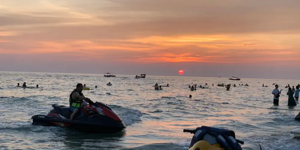 石螺口海灘位於潿洲島西部海岸,保持著潿洲島特有的原始與自然。這里海水清澈,海底有許多珊瑚,所以是潛水運動的好去處,也可以下海游泳或者坐摩托。沙灘寬闊厚軟,在這裡,你可以租把躺椅悠閒地吹吹海風、打打瞌睡,等到傍晚觀賞夕陽西下,靜享悠閒時光。