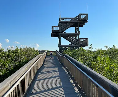 WeedonIslandPreserve保護着多樣化的水生和濕地生態系統,在兩旁種滿茂盛植被的木板路上進行徒步旅行,俯瞰水道、鳥類、鱷魚等。