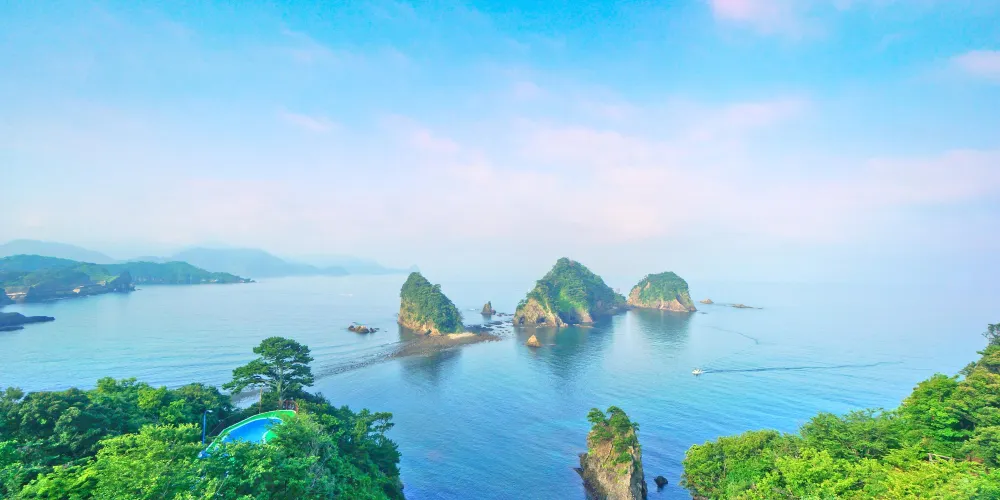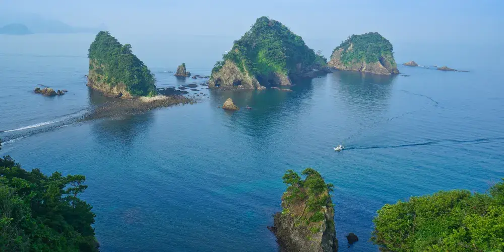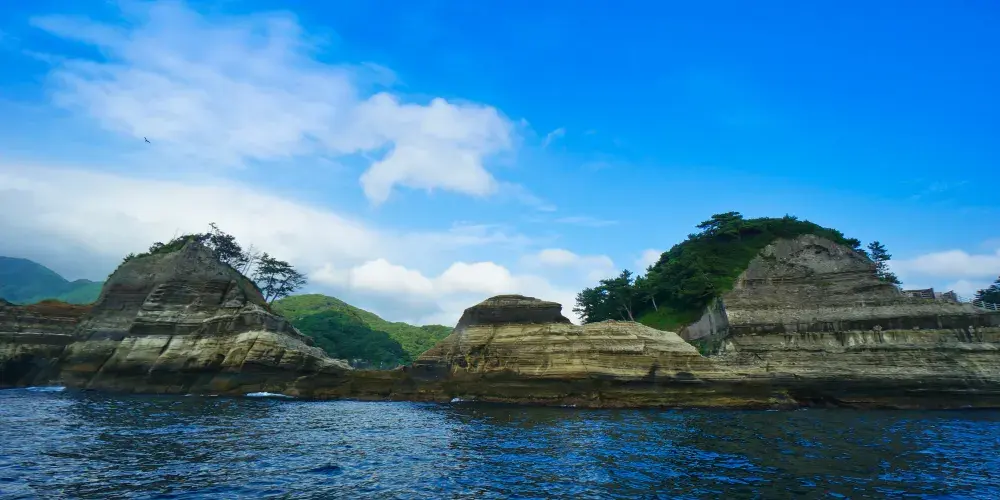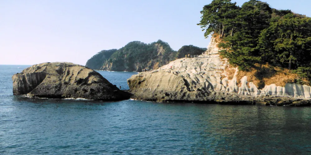 堂島位於半島西海岸的海灣內,是伊豆非常有名的景點。這裏的景色不錯,有許多灰白色的凝灰巖小島分佈在這裏,可以坐快艇遊一下近海。附近有三四郎島,分別是位於堂島西側的象島、中島和高島三個陸連島。據説退潮時會出現四個島,因此這些島就被人為“三四郎島”。欣賞下海島風光還是不錯的感受。此外,島上還有許多寺院,還能在吊橋和展望台上觀賞堂島的眾島嶼。另外,堂島還是有名的温泉地,依岸的温泉旅館林立,多為海景觀房。