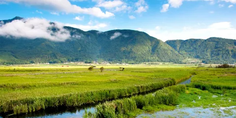 和順村頭小河繞村而過,兩座石拱橋跨河而建,形似雙虹臥波,故名雙虹橋,據傳建於清道光年間。兩橋造型精美,橋畔綠柳成蔭、紅蓮映日,村婦搗衣之聲不絕;橋下群鴨戲水,魚翔淺底,一派高原水鄉的恬美風光。