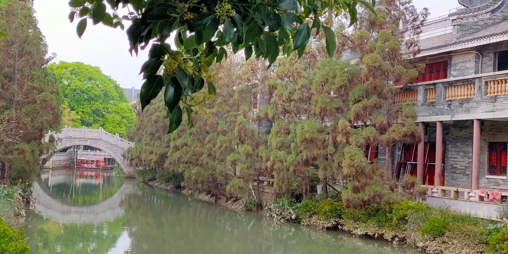 東涌水鄉風情街是一條倚河而建、具有嶺南建築特色的步行街,位於東涌炮樓的對面。臨河而建的大屋“青磚黛瓦”,優雅的烏篷船,精心佈置的石拱橋,還有水上集市、水上綠道等等,讓人充分領略到嶺南水鄉的韻味。在這裏,你還可品嚐各式農家菜、特色小吃。