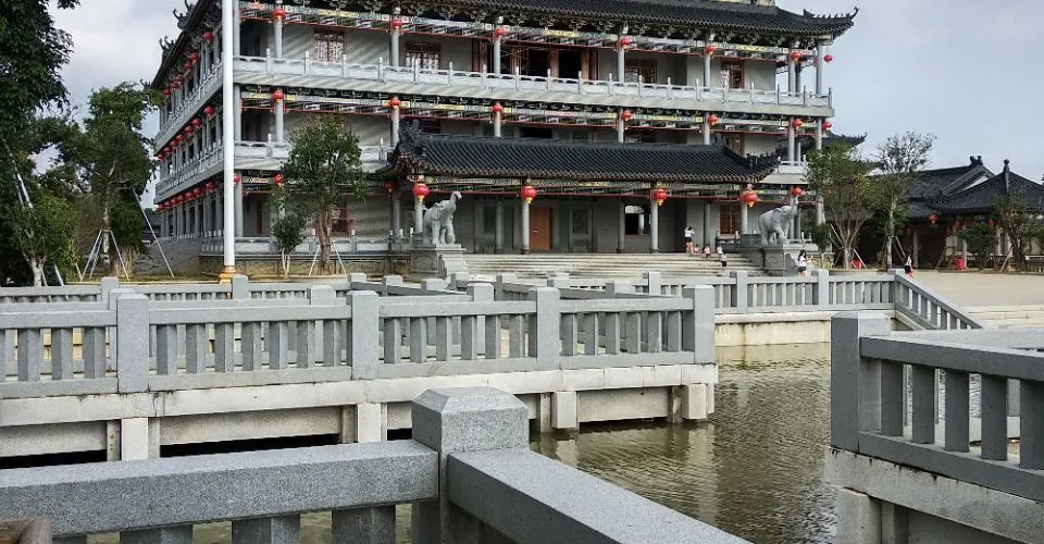 東港文化公園,是該鎮正在建設中的一個集紀念、遊覽、娛樂於一體的人文景觀居民公園。走近公園,首先映入眼簾的是一座宏偉的城樓。該城樓高約15米,城牆均由古樸的磚塊壘砌而成,城樓中間有一個正門,旁邊是兩個小門。從城樓進入,便是公園內部。園中矗立着林僑悟紀念塔、林家歷史紀念館、九曲廊橋、牌樓、涼亭、書院等一批建築物,數量頗為可觀,移步園中,可以領略不同風景。值得一提的是,林僑悟紀念塔高達38.8米,塔身雕刻着梁山泊108名好漢,圍繞塔身走上一圈,衹見梁山好漢雕像的神情、姿態各異,個個栩栩如生。林家歷史紀念館主要為紀念東港歷史人物清朝兵部侍郎林僑悟而建的。紀念館前是一座“九曲廊橋”,廊橋兩邊各有兩個對稱的涼亭。走近涼亭,衹見亭子上方為琉璃寶頂,亭檐下裝飾着五顏六色的花紋及圖案,看起來精美細緻。站在涼亭中間,涼風習習,耳邊蟬聲陣陣,目之所及是廊橋下蕩漾的碧波,此情此景實在令人心曠神怡。