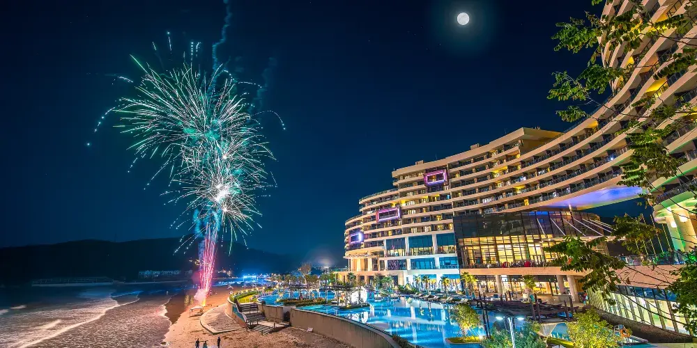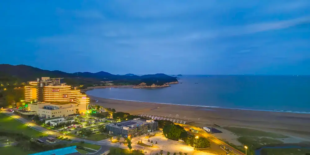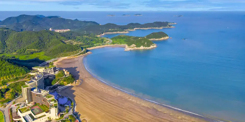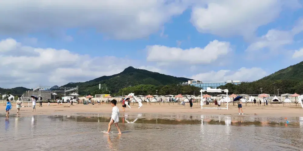 中國漁村位於寧波象山石浦,是一個發展得十分成熟的度假海灘。這裡不僅有自然風情的沙灘,還有遊樂場、歐美風情小鎮等。常常會有新人來此取景拍婚紗照,也有許多周邊遊客來此吹海風吃海鮮,非常適合週末假期來此休閒度假。