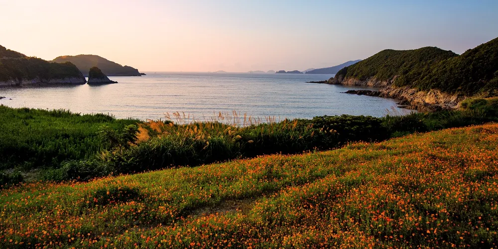 象山縣的半邊山風景點,瀕臨浩瀚東海,是個三面碧水相擁的小半島。景點的臨海山體獨特峻俏,瀕岸礁石秀美壯觀,卵石灘色彩斑斕十分誘人。沙灘、大海、花海、小動物、繞島公路、酒店民宿、帳篷營地,在這裡可以實現一切美好的度假休閒生活。